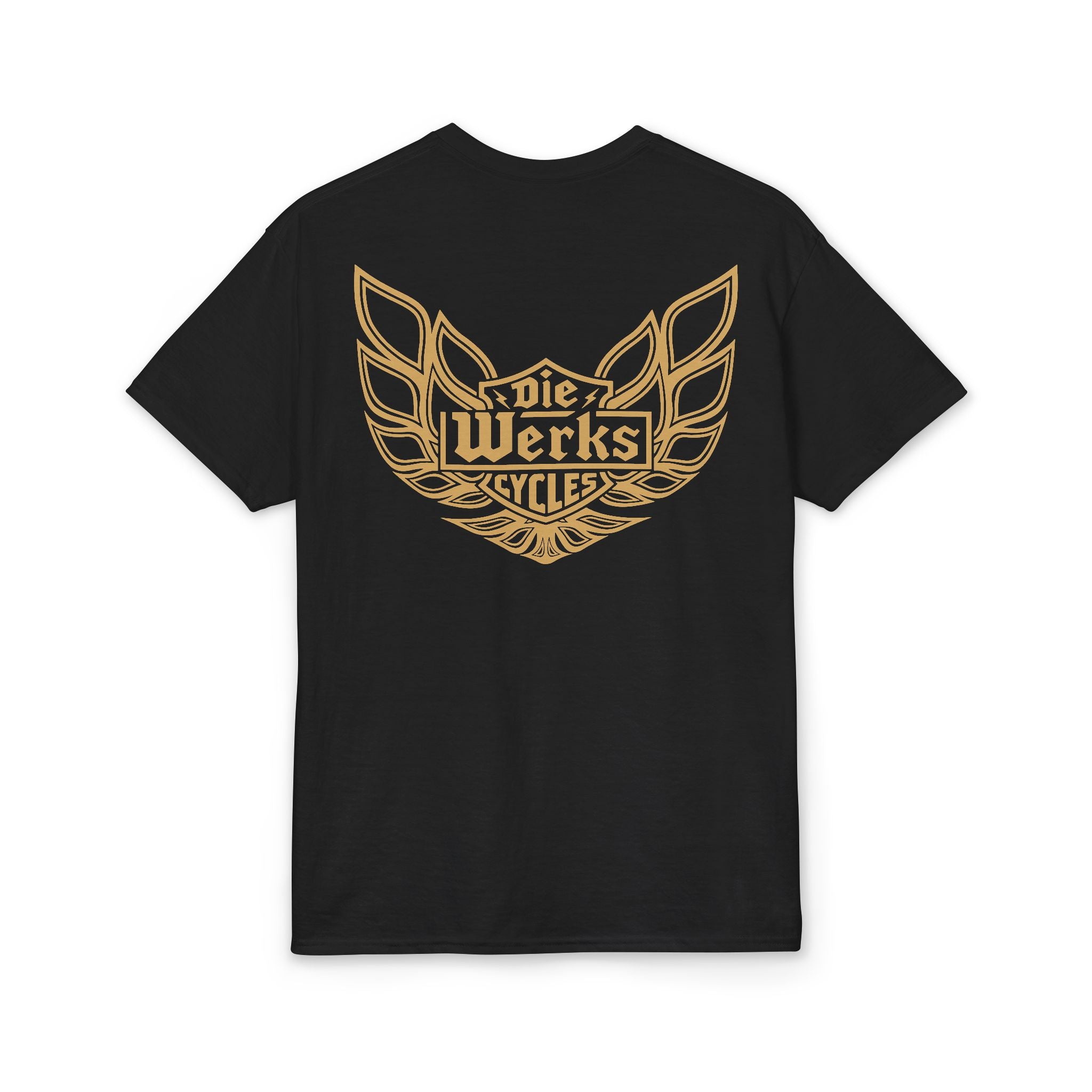DIE WERKS® Tee — Crafted from a durable 5.5 oz 50/50 blend of U.S. cotton and polyester featuring DryBlend® moisture-wicking technology, this relaxed-fit tee delivers the ideal balance of softness, long-lasting durability, and structured comfort for everyday wear.