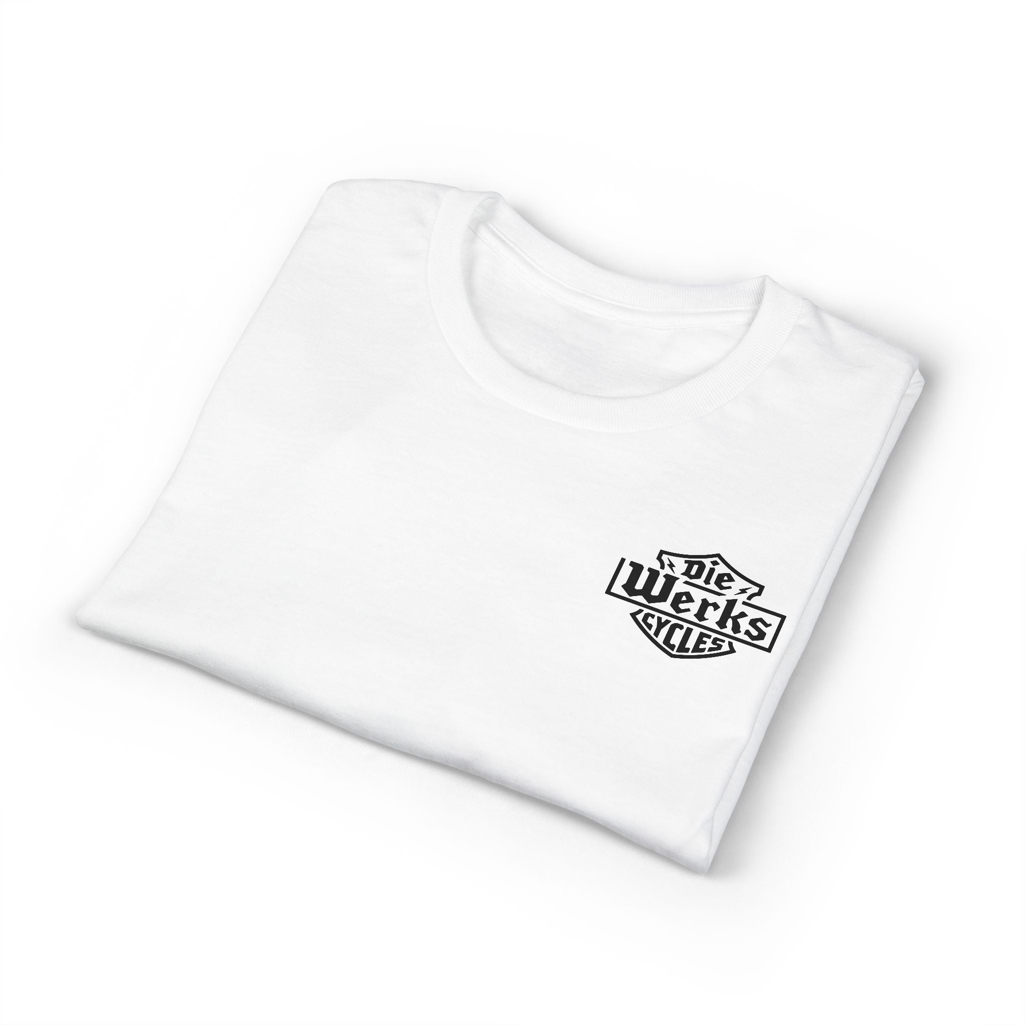 DIE WERKS® Tee — Crafted from a durable 5.5 oz 50/50 blend of U.S. cotton and polyester featuring DryBlend® moisture-wicking technology, this relaxed-fit tee delivers the ideal balance of softness, long-lasting durability, and structured comfort for everyday wear.