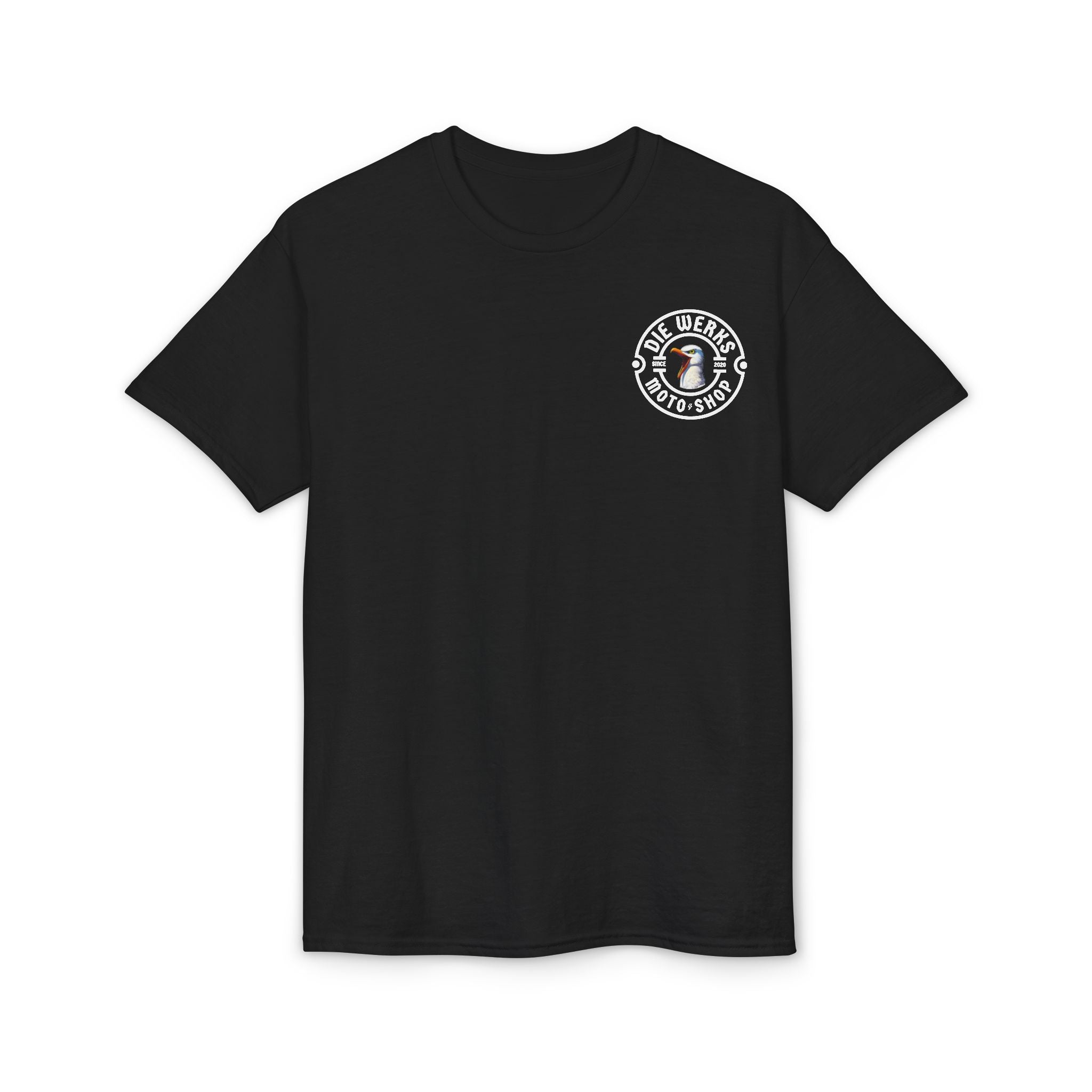 DIE WERKS® Tee — Crafted from a durable 5.5 oz 50/50 blend of U.S. cotton and polyester featuring DryBlend® moisture-wicking technology, this relaxed-fit tee delivers the ideal balance of softness, long-lasting durability, and structured comfort for everyday wear.